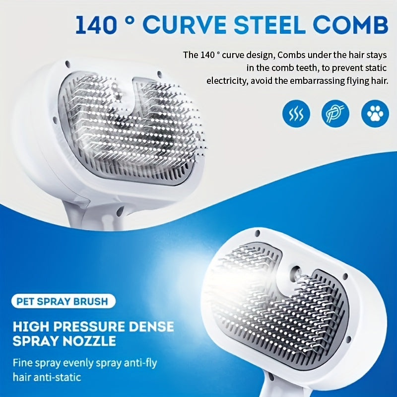Pet Mist & Grooming Brush - Cat & Dog Brush with Stainless Steel Bristles, Efficient Hair Removal, USB Rechargeable